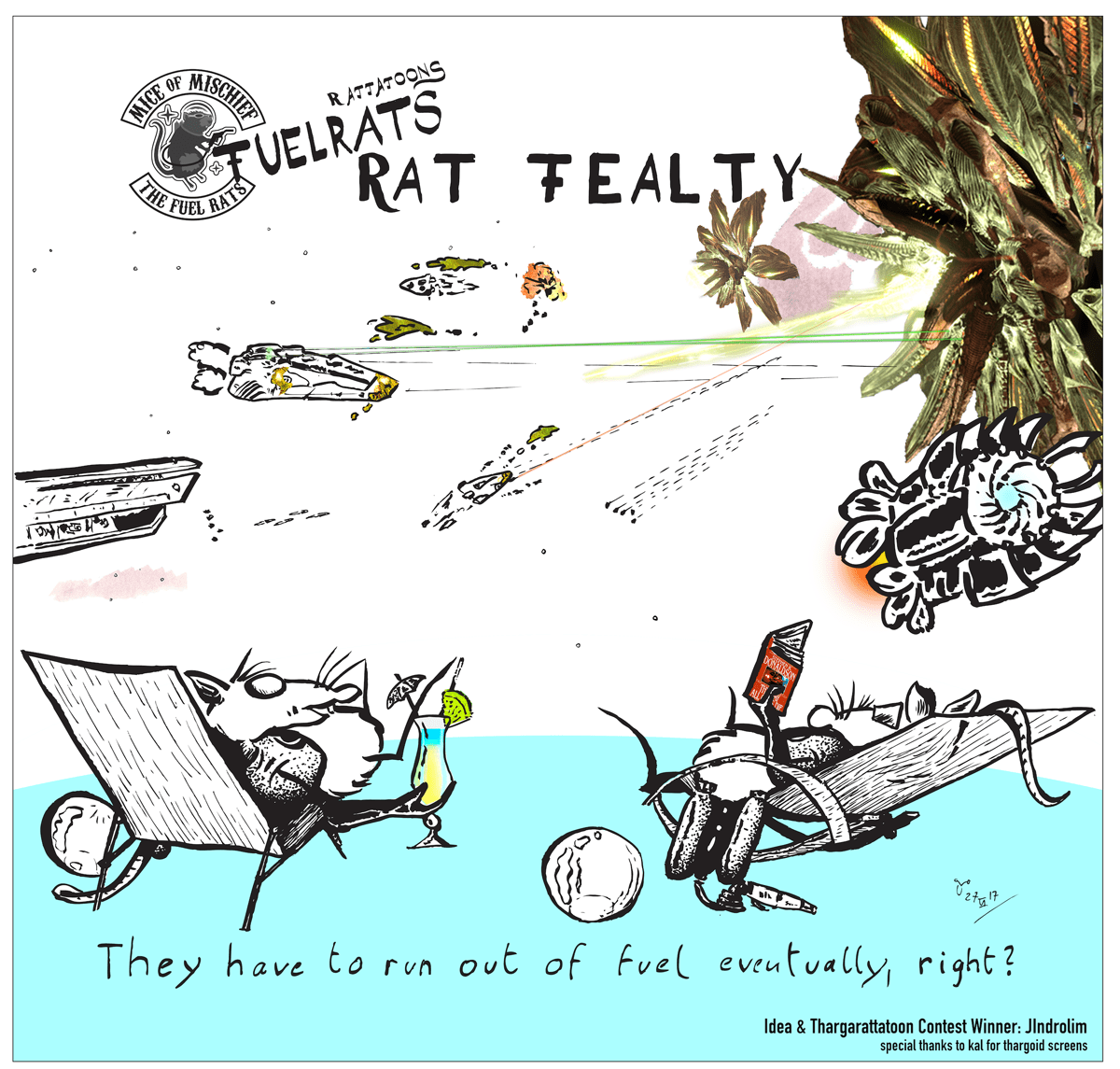Rat Fealty. They have to run our of fuel eventually, right?, by Uvelius Sång. Idea and first Thargoid Rattatoon Contest winner: JIndrolim